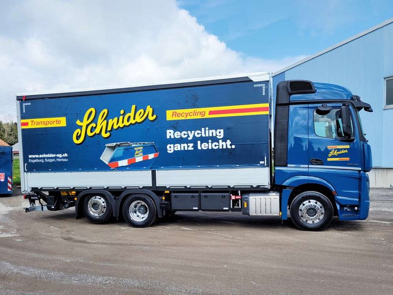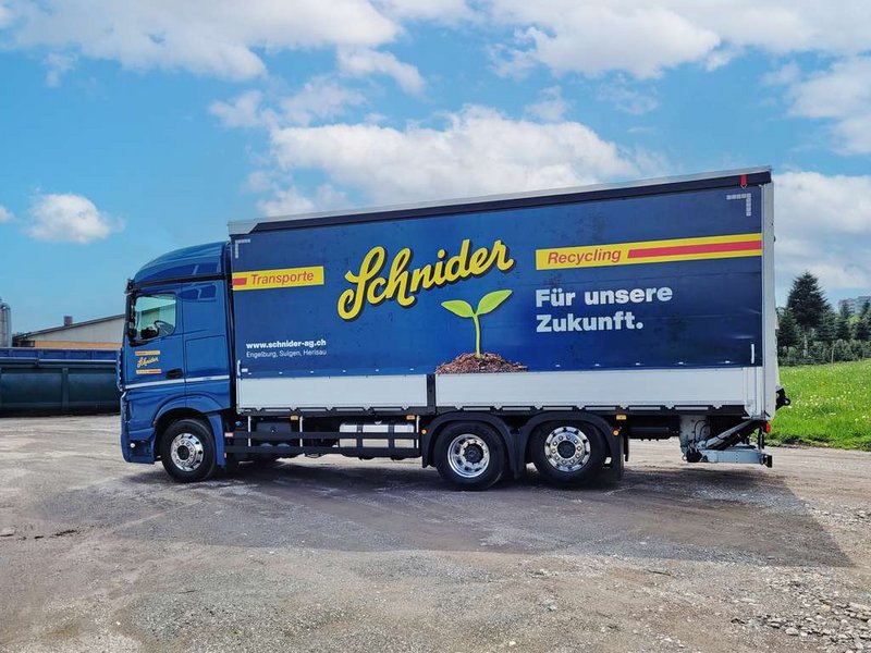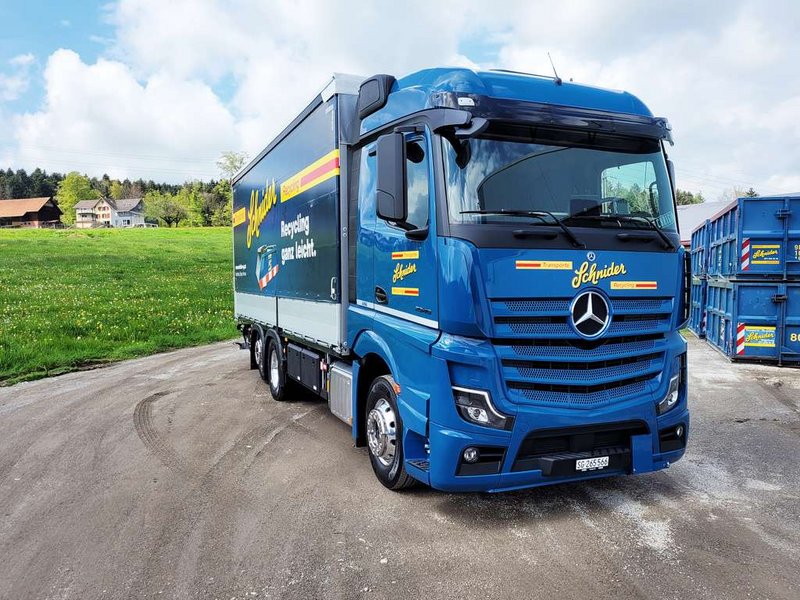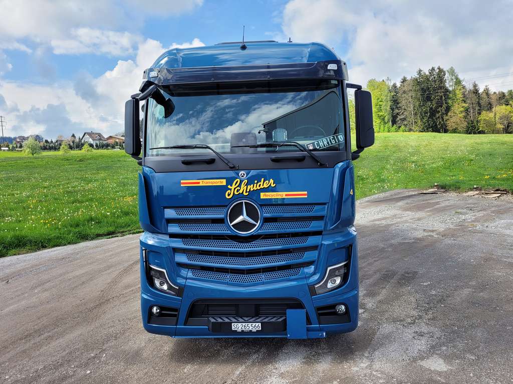 Der brandneue 3-Achs Mercedes Actros mit dem leistungsstarken OM471 Motor der 3. Generation. Mit ADR-Zulassung und einer Ladungskapazität von 14.500 kg, mit Anhänger sogar 24.500 kg, wird dieser LKW für den Transport von Recycling-Gebinden, Sonderabfällen und Komplett-Ladungen in der Ostschweiz eingesetzt. Wir bedanken uns bei Larag + Eschler für die Zusammenarbeit und wünschen Chrigi eine sichere und angenehme Fahrt mit seinem neuen Fahrzeug.